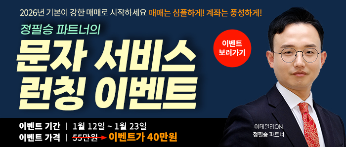 ※ 본 서비스는 이데일리ON 문자클럽 (on.edaily.co.kr)에서 제공하는 서비스로써 3일 무료체험 기간 종료시, 문자 발송이 자동으로 중단 됩니다.