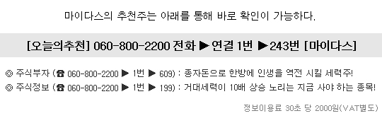 | 이전글 : 불과 한달만에 30배↑, 이 종목도 터진다! | ||||