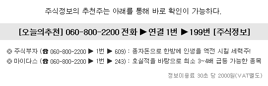 유료ARS 증권정보는 30초당 2000원(VAT별도)의 이용료가 부과됩니다.