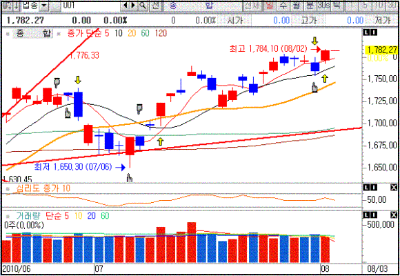 [정홍주 실장의 ‘마켓 집중공략’] 전고점 돌파에 따른 매물대 돌파를 의미하며 이는 가볍게 가볍게 상승할 가능성이 높아지고 있는 상태이다. 첫번째 금리 인상이후 주가는 더욱 상승탄력을 받고 있으며 이는 경기회복 신호로 시장에서는 받아들이고 있다. 외국인들의 순매수속에 월봉이 박스권 돌파 하였으며 장기 상승초기국면에 진입된 상태이다. 항상 전고점 돌파하는 첫날까지는 매수가 가능하지만 그 이후는 매수보다는 보유주관리에 주력해야 하며 매수한다 하여도 분할 매수만 가능하다. [투자 전략] 장중 조정시 저가 분할매수는 양호/ 보유주 5일선 및 연속 급등한 종목에 한하여 분차트 매매/ 대형 우량주 위주 매매/ 외국인,기관 순매수종목중 정배열 종목 매매 [주간투자전략] 이번 한주는 상승을 즐기는 한주/ 전고점 돌파에 따른 상승장을 즐겨야 하며 추격매수자제 보유주 수익을 종목별로 단기로 챙기면서 분차트 매매 양호/ 혹은 중기 5일선 매매 지속 [옵션누적포지션] 외국인 : 1780P 단기 저항권 개인: 지속 상승장에 촛점 겉으로 보이는 포지션이 1780P 저항인데 이곳을 돌파하였기에 헷지전략으로 보이며 오히려 더욱 강한 상승랠리가 가능한 흐름이다. 추가 급등에 촛점을 맞춘다. [업종과 종목] 외국인 지속 순매수 업종위주로 매매해야하며 대세상승장과 함께 증권주 대우증권(006800)을 빼놓을 수가 없다. 지수단기 급락이 나왔던 수개월 전에도 화학업종은 외국인 매도가 덜 나왔으며 오히려 순매수세가 유입되었으며 현재 전고점 돌파하는 업종으로 화학업종을 꼽을 수 있다. 절대저평가 한화케미칼(009830)을 비롯하여 예전 삼성SDI(006400), LG화학(051910)이 대박이 터진것처럼 2차전지 관련주인 SK에너지(096770)도 월봉의 박스권 돌파를 한것을 보아도 시세분출가능성이 높아 보이다. 철강주중 현대제철(004020)만이 전고점 돌파하는 고있으며 항상 고점 돌파형 종목을 공략하는 것이 유리하며 현대그룹가 또한 강세를 띄며 현대차,현대모비스 지속 공략 대상이다. 현대차 및 자동차 부품주는 여전히 저평가 메리트가 있기에 신고가 경신이 가능하며 금융주의 외국인 순매수와 지수 상승세와 함께 신한지주(055550)같은 은행주역시 지속 매매 대상이다. * 이데일리온(http://on.edaily.co.kr/) "여름휴가이벤트" 진행 중입니다! [7.27~8.13 / 유료서비스 결제시 기간연장! 갤럭시S 단말기 지원 혜택!] 정홍주 실장(강남큰손)은 이데일리TV 방송 “실전매매 고수에게 듣는다” 및 “신고수열전” 출연자이며, 시황방송 전문가입니다. [전문가클럽 안내 : 02-3772-0309, 0310] [본 글은 전문가의 투자 의견으로 이데일리의 의견과 다를 수 있습니다. 본 글은 투자에 참고용이며 매매에 대한 책임은 투자자 본인에게 있음을 양지하시기 바랍니다] ▶ 관련기사 ◀ ☞[특별공개방송]대세상승장 대비 긴급 장중리딩! ☞[공개방송]딱 30분, 정확한 시세분출 타이밍 잡기! ☞[저녁공개방송]정확한 시세분출 타이밍 잡기! |