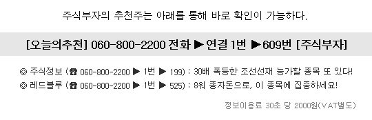 유료ARS 증권정보는 30초당 2000원(VAT별도)의 이용료가 부과됩니다.