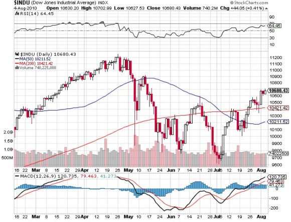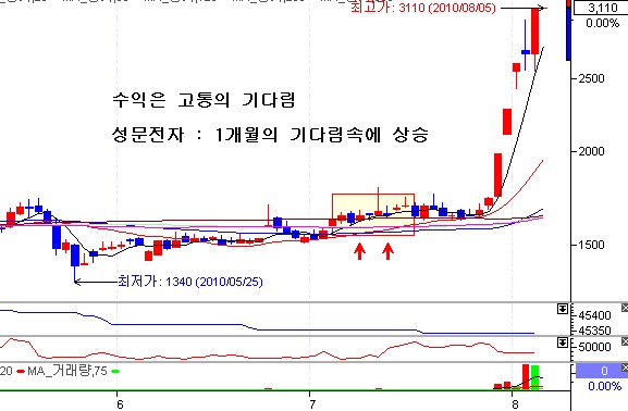 [최하영 전문가의 ‘성공투자의 비법’] ISM비제조업지수의 차트 여기에 ISM 비제조업 지수도 전월대비 상승폭을 확대했으며, 전문가들의 예상치를 웃도는 54.3을 기록하면서 경기확장국면에 대한 기대감을 높여가게 되었습니다. 이 부분은 당초 시장의 예상치가 전월보다 낮을 것으로 예상되었기 때문에 시장에 더욱 긍정적인 부분을 이야기 할 수 있었을 것이라 생각됩니다. 다우지수의 차트 다우지수는 꾸준히 오름세를 이어가고 있습니다. 1차적인 지지선으로 볼 수 있는 10500p의 지지를 만들어내면서 전고점인 11000p~11100p까지의 움직임을 만들고 있는데 시장의 지표개선에 따른 기대감을 본다면 이번 주와 다음주초에 걸친 상승을 통해 좋은 흐름을 이어갈 수 있을 것이라 생각됩니다. [투자 전략] 하지만 시장이 이렇게 좋은 흐름을 보이면서 상승세를 타고 있다 하더라도 모든 투자자들이 수익을 내는 것은 아니라는 것이 참으로 답답한 사실입니다. 순환매를 통해 들쭉날쭉한 종목별 상승이 전문투자자들도 따라가기 힘들다고 하기 때문에 시장에 참여한 이력이 얼마안 된 내공이 약한 초보투자자들은 시장이 상승해도 수익은 커녕 손실을 막는데 급급하였을 것입니다. 이럴 때는 조금 더 과감해지고 조금 더 인내하라는 말씀을 드리고 싶습니다. 시장의 큰 그림을 보게되면 여전히 상승국면에 따른 좋은 분위기를 가지고 있습니다. 과정 속에서 나타나는 잔파동에 휩쓸려 큰 그림을 간과하고 넘어가지 말라는 것입니다. 성문전자(014910)는 필자가 추천한 이후에 1개월여의 횡보를 거친 이후 기록적인 상승을 하여 높은 수익을 진행 중에 있는데 중간에 지루하다하여 다른 종목으로 갈아탔다면 이러한 수익율을 경험하지 못했을 것입니다. GS(078930)역시 작년 12월부터 공개적으로 추천한 기업인데 최근 6월 한달 동안 다시 지주사개념의 기업을 공략해야 수익을 낼 수 있다는 말씀을 드리면서 CJ(001040), LG(003550)등과 함께 추천을 드린 종목입니다. 이 종목 역시 1개월여에 걸쳐 10%미만의 상승율을 보여주었지만 최근 가파른 상승을 다시 만들고 있습니다. 다소 지루할 수 있는 횡보구간 이후에 나타난 달콤한 수익이라고 볼 수 있는 것입니다. 현재 시장에는 이러한 흐름을 보이는 종목들이 많습니다. 건설, 철강, 조선, 해운, 증권, 은행등의 업종이 그러한 모습들을 보이고 있는데 모든 종목을 다 매수할 수는 없기 때문에 대표종목인 현대건설(000720), POSCO(005490), 현대중공업(009540), 한진해운(117930)등 관심있는 업종의 종목을 선정하여 골고루 중기투자전략을 세워보는 것이 좋은 투자가 될 것입니다. 실패하지 않는 성공투자의 가장 첫번째 조건은 수익구간에서 매도하는 것입니다. 지금 수익이 나지 않고 손실구간이라고 하더라도 큰 흐름이 상승세를 보이고 있다면 반드시 여러분들이 원하는 수익권까지 갈 수 있을 것입니다. 중간에 포기하지말고 실패하지 않는 투자로 인내심을 가지고 성공투자 하시기 바랍니다. * 이데일리온(http://on.edaily.co.kr/) "여름휴가이벤트" 진행 중입니다! [7.27~8.13 / 유료서비스 결제시 기간연장! 갤럭시S 단말기 지원 혜택!] 최하영 전문가(성투사)는 이데일리TV “신고수열전” 및 “대가들의 투자비법” 출연자이며, 시황방송 전문가입니다. [전문가클럽 안내 : 02-3772-0309, 0310] [본 글은 전문가의 투자 의견으로 이데일리의 의견과 다를 수 있습니다. 본 글은 투자에 참고용이며 매매에 대한 책임은 투자자 본인에게 있음을 양지하시기 바랍니다] ▶ 관련기사 ◀ ☞2보전진 1보후퇴, 시장에 충격은 없다! ☞실적과 지표가 만든 강세장, 준비된 종목들의 고수익 예상 ☞눈치보는 증시, 길어지는 숨고르기 구간 |