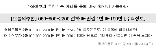 유료ARS 증권정보는 30초당 2000원(VAT별도)의 이용료가 부과됩니다.