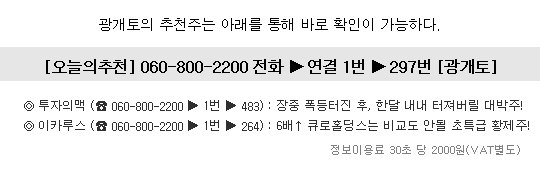 유료ARS 증권정보는 30초당 2000원(VAT별도)의 이용료가 부과됩니다.