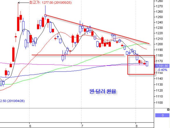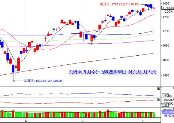[최하영 전문가의 ‘성공투자의 비법’] 다우지수는 직전 지지점대인 10500p의 단단한 지지를 받고 있어 이번주동안 추가상승을 통한 단기반등으로 단기목표치인 11000p에 근접하거나 돌파하게될 가능성이 높다고 보여집니다. 하지만 국내지수는 약간 고려해야할 변수가 있습니다. 바로 외국인들의 매매동향인데 실제로 5월25일부터 외국인들의 매수세가 시장을 끌어올렸다고 보아야합니다. 위의 누적매매동향에서 알 수 있듯이 실제로 시장을 받쳐서 올린것은 외국인들의 매수세였습니다. 이것은 5월 후반에 해소되다시피한 유럽의 제정악화에 따른 악재소멸과 환율의 꾸준한 하락세가 외국인들의 매수세를 부추겼기 때문입니다. 코스피지수의 차트를 들여다보면 외국인들의 매매동향과 흐름을 같이하고 있다는 것을 알 수 있습니다. 따라서 현재 시장의 방향성은 외국인들의 매매가 크게 좌우하고 있다고 할 수 있는데 일단 유럽지역의 불안감은 해소된 것으로 보아야하기 때문에 글로벌 악재에 따른 변수는 크지않을 것으로 생각됩니다. 하지만 현재 환율을 들여다보면 외국인매수에는 그렇게 긍정적이지 않습니다. 환율차트는 고점을 낮춰가면서 꾸준히 하락세를 유지해왔고 외국인들의 매수세를 유지시켜주었습니다. 하지만 최근 환율의 흐름은 1160원대의 지지선이 생겨나고 있어 추가하락보다는 단기낙폭과대에 따른 반등이 예상되고 있어 외국인들의 매수세가 주춤하게될 가능성이 높아졌습니다. 외국인들의 매수가 반쪽짜리가 된다면 시장이 오르기는 하겠지만 종목별 탄력은 줄어들 가능성이 높습니다. 결과적으로 지수는 1800p을 돌파하지만 종목별 상승율은 미비하여 개인투자자들의 수익율이 신통치못할 가능성이 높으므로 개인투자자들은 순환매에 대한 전략을 꼼꼼히 짜두어야겠습니다. [투자 전략] 개인투자자들이 순환매에 대응하는 전략은 시황을 조금 더 일찍 예측하여 내다보거나 수급의 이동현황을 계속적으로 확인하면서 순환업종을 따라다니는 것이라고 할 수 있습니다. 하지만 수급의 이동현황을 확인하면서 따라가다보면 수급주체들의 뒤꽁무니만 &51922;게되어 단기상투에 진입하는 경우도 많이 발생하게 되므로 투자경력이 적은 초보투자자들은 삼가해야할 전략이라고 할 수 있습니다. 지금 상황에서 가장 좋은 전략은 시장을 조금 더 일찍 예측하여 내다보는것인데, 이번주 전망에 따라 대응하는 전략중 하나를 살펴보면 우선 시장에 금리인상의 기대감이 있다고 볼 수 있습니다. 따라서 지난주부터 이번주의 금통위를 예상하고 보험주를 매수했다면 주초의 반등을 통해서 수익을 챙길 수 있을 것이라 판단됩니다. 관심종목은 삼성화재(000810), 현대해상(001450)등입니다. 또한 곡물가격 상승에 따라 농업주들이 강세를 보이고 있는데 세계3대 곡물수출국가인 러시아에서 이상기후로 인해 연말까지 곡물수출을 하지 않겠다고 밝혔기때문입니다. 이 사항은 단기성이 아니라 어느정도 기간적인 재료로 보아야하기때문에 대표농업주인 남해화학(025860)이나 농우바이오(054050)등에 관심이 필요합니다. 그외 관심업종으로는 철강, 건설주에 대한 꾸준한 관심과 증권, 금융주에 대한 관심이 필요하겠습니다. 그리고 가장 중요한 것은 시장을 일찍 예측했을때는 반드시 어느정도 기다릴 수 있는 인내심이 필요하겠습니다. 큰 수익은 항상 종목에 대한 믿음과 인내에서 나온다는 것을 잊지마시기 바랍니다. 이번주도 실패없는 성공투자하시기 바랍니다. * 이데일리온(http://on.edaily.co.kr/) "여름휴가이벤트" 진행 중입니다! [7.27~8.13 / 유료서비스 결제시 기간연장! 갤럭시S 단말기 지원 혜택!] 최하영 전문가(성투사)는 이데일리TV “신고수열전” 및 “대가들의 투자비법” 출연자이며, 시황방송 전문가입니다. [전문가클럽 안내 : 02-3772-0309, 0310] [본 글은 전문가의 투자 의견으로 이데일리의 의견과 다를 수 있습니다. 본 글은 투자에 참고용이며 매매에 대한 책임은 투자자 본인에게 있음을 양지하시기 바랍니다] ▶ 관련기사 ◀ ☞답답한 증시에 홧병나는 개인투자자 ☞지표개선으로 투자심리 회복, 추가상승을 위한 발걸음 ☞2보전진 1보후퇴, 시장에 충격은 없다! |