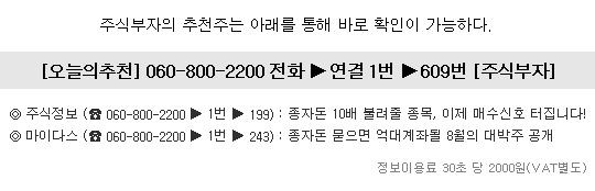 유료ARS 증권정보는 30초당 2000원(VAT별도)의 이용료가 부과됩니다.