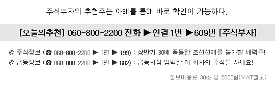 ▶ 관련기사 ◀ ☞이 종목 지금 매수하면, 억대계좌 무조건 터진다! ☞급등시점 임박한 이 회사의 주식을 사세요! ☞2시 이후 무섭게 치고 날아갈 신테마대장주!