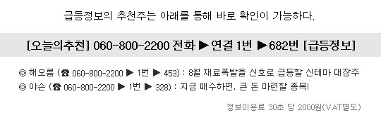 유료ARS 증권정보는 30초당 2000원(VAT별도)의 이용료가 부과됩니다.