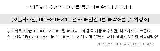 유료ARS 증권정보는 30초당 2000원(VAT별도)의 이용료가 부과됩니다.