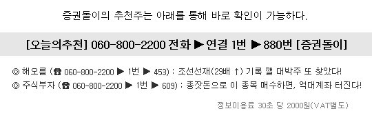 유료ARS 증권정보는 30초당 2000원(VAT별도)의 이용료가 부과됩니다.