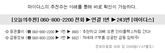 유료ARS 증권정보는 30초당 2000원(VAT별도)의 이용료가 부과됩니다.