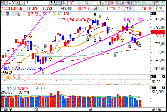 [정홍주 실장의 ‘마켓 집중공략’] 3차 추세하단선이 붕괴되었지만 바로 회복하는 모습을 보이며 20일선까지 바짝 다가오는 모습이다.외국인의 순매수속에 지수의 안정적인 상승은 선물대량매수이다. 더블딥의 이야기가 시중에 나왔지만 외국인은 현물 쪽에서 대량 매도를 하지 않았기에 지속 하락보다는 하방경직의 가능성에 촛점을 맞추었는데 전저점을 이탈하지 않고 10일선 회복하였기에 상승반전이 임박하고 있다. 전저점에서의 지지 성공은 3차 하락 파동보다 재차 전고점 돌파와 상승반전의 가능성을 두고 있다.하락의 마무리권이란 뜻이다. 상승반전은 전고점 돌파 추세상단 돌파를 의미한다. 월봉의 박스권 돌파가 이미 이루어진 상태이기에 결국 큰 상승랠리의 가능성이 높아지고 있는 상태이며 장기 골든크로스와 720일선을 최대 바닥에 두고 가면서 큰 상승장이 조만간 열릴 것으로 기대되고 있다. 외국인의 현물 대량매수가 적극 들어오고 있는 것도 아니면 이탈 이후 반등이고 옵션누적 포지션 역시 제한적 반등이기에 1780P 이상은 상승하기 힘든구조로 당분간 횡보등락이 예상되며 이에 점가 매수기회를 서서히 잡아야 할 것이다. 일단 단기 5일선 매매/ 20일선 돌파시 적극 매수관점 특징적인 점은 2005 완벽한 정배열속에 대세상승장을 수년간 보였는데 2010년 8월달에 장기 골든크로스 발생되며 완벽한 정배열속에 들어갔다. 이번 조정만 잘 해결된다면 지수 박스권 돌파를 해준 상태로 큰 상승랠리 가능성도 열어 두어야 한다. [투자전략] 신규는 5일선 매매/ 전량보다는 일부만 주식비중 매수관점/ 20일선 돌파시 주식비중 80%이상 확대 외국인,기관 순매수종목 위주 매매/ 만약 5일선 붕괴시 일부매수한 종목 역시 재차 현금화 한다. [주간투자전략] 추세 이탈이후 반등이기에 이번 한주는 연속 상승보다는 제한적 반등으로 회복국면으로서 횡보등락에 초점을 맞추어 저가 매수의 천천히 매수를 한다. 단 현구간은 5일선 매매를 한다. 이번주 20일선 회복시에만 적극 매수에 나선다. 만약 5일선 붕괴시 일부매수한 종목 역시 재차 현금화 한다. [옵션누적포지션] 외국인 : 1770~1780P까지 제한적 반등 상승지양 하는 포지션 개인: 지속 점진적상승 반등이 있다 하여도 제한적 반등에 촛점/ 현재상황에 맞추어 전략을 수정하며 대응전략을 펼쳐야 할 것이며 먼저 분석 ㅡ> 예상(전망)ㅡ>전략 순서대로 주식시장에 대응하는 방법이 중요하다. [업종과 종목] DTI규제 완화로 건설주의 반등이 나왔지만 이번 정책의 실효성이 아직은 의문이 드는 만큼 조심하면서 손절가를 정하며 매매를 해야 할 것이다. 이미 항공주 대한항공은 상승하기 위해서는 한참 기간조정을 거쳐야 하며 개인들이 잔뜩 매수한 전기전자 업종도 기간조정의 시간이 많이 걸릴 듯 하다. 화학업종은 여전히 시장에서 강하며 지주회사들의 정배열 상태가 잘 유지되고 있다. 테마주인 제4이동통신 관련주 쏠리테크(050890) 같은 급등주가 시장에서 움직이며 6자 회담관련주 대북 송전관련주의 상승가능성도 향후 기대되고 있다. 외국인과 기관이 무섭게 매수하고 있는 조선주 대우조선해양(042660), 삼성중공업(010140)의 5일선 매매 지속되고 있으며 스마트그리드 테마주 대장주인 LS산전 5일선 지지속 양호한 모습이다. 화학주중 월봉이 박스권 돌파한 SK에너지(096770) 같은 종목만이 안정적 매수가 가능하다. 정홍주 실장(강남큰손)은 이데일리TV 방송 “실전매매 고수에게 듣는다” 및 “신고수열전” 출연자이며, 시황방송 전문가입니다. [전문가클럽 안내 : 02-3772-0309, 0310] [본 글은 전문가의 투자 의견으로 이데일리의 의견과 다를 수 있습니다. 본 글은 투자에 참고용이며 매매에 대한 책임은 투자자 본인에게 있음을 양지하시기 바랍니다] ▶ 관련기사 ◀ ☞[저녁공개방송]9월장 수익을 좌우할 최초 공개 종목! ☞[특별공개방송]8월 장기 골든크로스 완벽한 정배열, 다음 순서는? ☞손절가 붕괴이후 리스크관리 구간, 변곡점이 다가온다? |