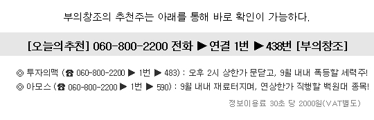 유료ARS 증권정보는 30초당 2000원(VAT별도)의 이용료가 부과됩니다.