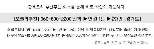 ▶ 관련기사 ◀ ☞단기 50배 성장, 이번주 급등은 이 종목에서 시작한다! ☞이제 곧 재료터지면, 내일부터 줄상한가 터진다! ☞13배 급등한 “다날”은 비교도 안되는 대박주가 출몰한다!