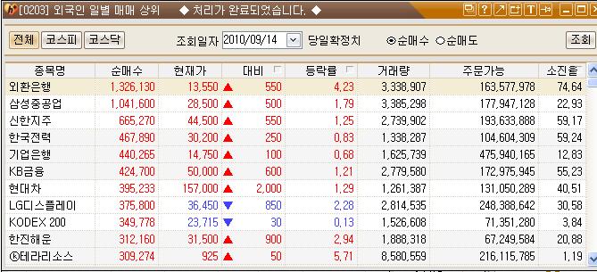 현재 엔고현상이 수혜를 입는 자동차 업종과 중국 경기모멘텀 재부각 가능성에 대한 기대로 인해 따라서 상승초기에는 안정적으로 외국인들의 매수종목에 관심을 둘 필요가 있고, 특히 이익모멘텀이 상대적으로 높게 형성된 운송, 자동차, 화학, 제약, 유통업종 등에 관심을 가지는 것이 좋겠습니다.
