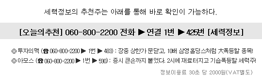 유료ARS 증권정보는 30초당 2000원(VAT별도)의 이용료가 부과됩니다.