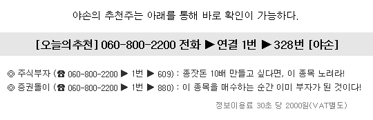 유료ARS 증권정보는 30초당 2000원(VAT별도)의 이용료가 부과됩니다.