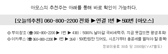 유료ARS 증권정보는 30초당 2000원(VAT별도)의 이용료가 부과됩니다.