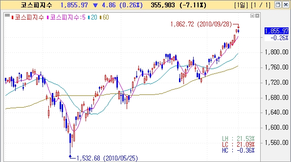 [이광희 소장의 ‘미래를 여는 투자’] 주춤하고 있는 투자자들에게 진입기회를 주는 친절한 조정이 이루어졌습니다. 오늘 코스피는 연속된 상승에 따른 피로감과 뉴욕증시 하락의 영향으로 닷새만에 숨고르기를 보였습니다. 4거래일 연속 연중고점을 경신하던 가파른 상승세에 이를 주도하던 외국인의 매도반전으로 소폭 하락하며 마감하였습니다. 10거래일만에 매도로 돌아선 외국인과 4일연속 매물을 쏟아내는 투신권, 여기에 고점에 대한 불안감과 미증시 하락으로 인한 투자심리 위축까지 겹치면서 가파랐던 상승랠리에 일단 제동을 거는 하루였습니다. ![]() 그러나 이같은 조정은 오히려 반가운 조정이라 하겠습니다. 이전글에서도 지속적으로 말씀드렸다시피 지금의 자리에서 단기조정은 올 수 있으나, 상승추세는 지속된다 하였습니다. 오히려 그간 너무 숨가쁘게 달려 왔기 때문에 이같은 숨고르기 국면을 거치는 것이 과열을 막고 매물을 소화하면서 추가 상승을 위한 힘을 비축한다는 점에서 바람직하다고 볼 수 있습니다. 지금 지수가 고점기준 1,862.72p까지 올라서면서 1900선을 목전에 두고 있습니다. 역사적 고점이라고 볼 수 있는 2000선을 향해 약 7%가량밖에 여력이 남지 않은 상황이기 때문에 현재자리에서의 고점논란이 나오고 있는 것은 당연한지도 모릅니다. 그러나 단순히 숫자적으로 보면 그러할지라도 내용면에서는 이전 고점부근과는 차원이 다른 큰 시장을 예고하고 있음을 아셔야 합니다. 지난 2008년은 코스피 1800수준에서 PER이 약 12배에 달했던 것에 비교하면 현재는 약 9배정도 수준으로 같은 지수대이지만 여전히 지수는 저평가 영역에 속한다는 차이점이 있습니다. 또 지난 08년에는 코스피 2000을 넘어가면서 1000조원 시대를 열었지만, 현재는 1800선을 돌파하면서 시가총액 1000조원시대를 넘어 최대치를 경신하면서 풍부한 유동성에 따른 큰 시장이 도래했음을 알리고 있습니다. 또한 지난 08년에는 고점에서 외국인들의 매도세가 두르러졌지만, 비록 오늘 매도로 돌아섰다고는 하지만 시장을 이끄는 주체인 외국인들의 적극적인 매수세로 수급적으로도 좋은 흐름을 보인다 하겠고, 위기를 겪은 이후 경제가 회복됨에 따라 긴 하락추세에 따른 반전이라는 점에서 향후 2~3년간 대대적인 상승장이 펼쳐질 것이라 기대됩니다. 3분기 예상실적도 최대치 수준입니다. 실적이 좋은 기업의 주가가 상승하는데 근거없는 고점에 대한 불안감으로 심리적 위축을 받는 것은 의미없는 일입니다. 현재 우리나라 뿐 아니라 글로벌 증시 전반이 상승에 대한 강한 탄력을 받았고 이같은 상승탄력은 특별한 악재가 나오지 않는 한 유지될 것이기 때문에 수치에 연연하기 보다는 전반적인 지수흐름을 의연하게 받아들여야 할 것입니다. 특히, 글로벌 증시중에서도 우리시장은 상당히 탄력적이고 견조한 상승흐름을 보여주고 있습니다. 이전에도 말씀드렸듯이 경제가 안정화 되면서 주가가 상승하기 시작하면 갈곳 없이 넘쳐나던 풍부한 글로벌 유동성이 증시에 편입되는데, 그중에서도 선진 시장에 비하여 수익기대가 높고 다른 이머징마켓에 비해 상대적으로 실적이 양호한 우리시장이 매력적으로 부각될 것이라 하였습니다. 그러한 조짐이 이미 외국인의 대량매수세로 입증되고 있고, 장기성자금이 주로 유입된다는 점에서 향후 상당기간동안 증시 기상은 맑을 것으로 전망됩니다. 오늘 발표된 정부 예산안에서도 내년 경제성장률을 5%로 가정한 예산을 발표함으로서 올해에 이어 내년에도 안정적인 경기회복을 보여줄 것으로 기대하고 있습니다. 혹여 정부가 예상한 5%성장이 과대예측된 것이라 하더라도 그만큼 경제상황이 낙관적이라는 것이기 때문에 단기조정이 좀더 이어지더라도 지금은 물러설 타이밍은 아니라는 판단입니다. [투자전략] 시장흐름은 상승쪽으로 방향을 잡는 것이 맞고, 그렇다면 어떠한 종목에 비중을 실을 것인가가 관건입니다. 현재는 단기승부에 치중하기보다는 중장기적 관점에서 멀리 보고 크게 먹을 종목에 비중을 늘려가는 이 좋아 보입니다. 현재 시장이 전반적으로 상승하고 있지만, 뚜렷한 주도주가 두각되지 않았기 때문에 향후 주도주로 부각될 유망업종에 관심을 기울이는 것이 좋겠습니다. 일단 단기적으로는 이전 주도주인 자동차업종이 여전히 강세를 보여주고 있으며 향후에도 그같은 흐름은 좀더 이어질 것으로 보이기 때문에 관심을 지속하는 것도 좋아 보입니다. 여기에 증시가 활발해지면서 증권주의 움직임이 변화하고 있고, 증시상승과 함께 이같은 흐름은 더욱 강화될 것이기 때문에 지속적인 관심을 집중할 필요가 있습니다. 여기에 아직 상승이 가시화되지 않은 KB금융, 우리금융 등의 은행주도 향후 단기 뿐 아니라 중기적인 관점에서도 지속적으로 상승가능성이 높은 유망업종으로 포트편입시 관심권에 둘 종목입니다. 또 한진해운, STX팬오션과 같은 해운주의 경우도 향후 좋은 흐름을 보여줄 것으로 기대되며 두산인프라코어 같은 기계업종도 유망해 보입니다. ![]() 어찌되었건 이번 시장은 지금까지와는 차원이다른 큰 시장이 펼쳐질 것으로 기대됩니