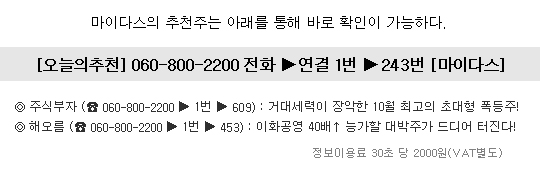 유료ARS 증권정보는 30초당 2000원(VAT별도)의 이용료가 부과됩니다.
