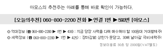 유료ARS 증권정보는 30초당 2000원(VAT별도)의 이용료가 부과됩니다.