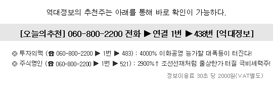 ▶ 관련기사 ◀ ☞12배 다날 능가할 초대박주 이번 10월 또 나온다! ☞4000% 이화공영 능가할 대폭등이 터진다! ☞단돈 100만원으로도 인생역전 가능한 종목 공개!