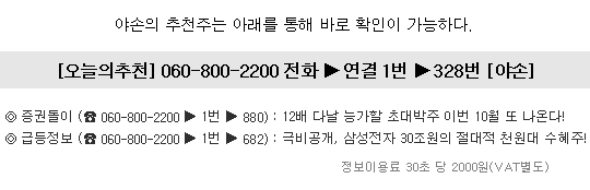▶ 관련기사 ◀ ☞당장매수! 29배↑ 날린 극비세력, 이 종목에 또 붙었다! ☞극비공개, 삼성전자 30조원의 절대적 천원대 수혜주! ☞비장의 각오로 추천하는 1000% 大폭등 임박주!