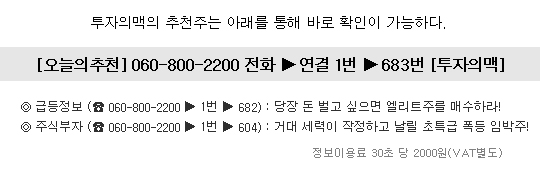 개별테마 대장주 발굴의 1인자 ‘투자의맥’는 이번 종목 외엔 올해 대박주는 끝이다는 필사의 각오를 다지며, 급등임박주를 긴급 추천한다고 다음과 같이 전했다. 오늘 추천드릴 이 종목은 “비티씨정보”처럼 재료가 터지기 전부터 점상한가로 날아갈 초극비의 세력주이다. 한마디로 잡기만 하면 초대박이 터질 종목이라는 것이다. 세상을 뒤흔들 초대형 이슈와 초특급.재료 그리고 폭발적인 성장과 정석과도 같은 세력매집이라는 급등주 코드가 기막힐 정도로 완벽하게 갖추고 있는 급등 임박주이다. 필자조차 더 이상 이만한 종목은 올해가 끝나기 전 절대 나오지 않을 것에 믿어 의심치 않을 정도다. 특히 최근 터지고 있는 중국발 호재와 세계1위 업체들의 수조원에 달하는 투자계획에 따라 이 분야에서타의 추종을 불허하는 독점적 위치를 가지고 있는 동사의 막대한 실적 성장성만으로 점상한가 수방 터지는 것은 ‘무조건!’이라는 표현밖에 생각나지 않을 정도이다. 분명히 말하지만, 이 종목은 1000% 터지는 것은 당연한 것이고, 새로운 급등주가 필요한 현시점에서 세력들이 3,000%~4000% 날리는 것도 시간문제일 뿐이다! 종목에 대해 자세히 노출하면, 종목을 확인한 선택받은 회원들이 피해를 받을 수 있기에, 보안상 밝힐 수는 없지만, 그 이상도 날릴만한 초대형 호재와 함께 엄청난 매수세가 대기하고 있기 때문에 당신에게 있어 일생일대의 엄청난 수익을 안겨줄 초대박 종목이라 확신하는 것이다. 이변이 없는 한 이번주 혹은 이달 내로 시장에 공개될 가능성이 크다. 재료가 노출되기 전에 잡아도 최소한500% 이상 수익을 거머쥘 수 있는 종목이다. 정말이지 단기간에 최소 10배 이상의 대박수익을 찾는 투자자라면, 이번이 마지막이란 심정으로 모든 것을 걸어야 한다. 이 종목은 잡기만 하면 무조건 대박을 안겨줄 종목이기 때문에 손해 본 모든 종목을 팔아서라도 갈아타기 바란다. 유료ARS 증권정보는 30초당 2000원(VAT별도)의 이용료가 부과됩니다. [핫이슈 종목 게시판] 우리들제약(004720)/유비케어(032620)/차바이오앤(085660)/혜인(003010)/엠넷미디어(056200)/중국식품포장(900060)/유아이에너지(050050)/STX(011810)/동부CNI(044640)/KTB투자증권(030210) ■ 추천종목은 기사가 게재되는 연관 종목과 다를 수 있으니 추천 종목명을 꼭 확인하시기 바랍니다. ■ 본 자료는 정보제공을 위한 보도 자료입니다. 본 정보는 이데일리의 편집방향과 다를 수 있습니다. 제공되는 정보는 참고자료일 뿐이며, 본 사이트를 통해 제공된 정보에 의해 행해진 거래에 대해서 당사는 법적인 책임을 지지 않습니다. ▶ 관련기사 ◀ ☞3000% 시세날릴 백원대 거대 황제주 또 출몰한다! ☞긴급공개! 거대 세력이 작정하고 날릴 초특급 폭등 임박주! ☞장중 상한가 터지고, 시초가부터 폭발할 극비大박주! |