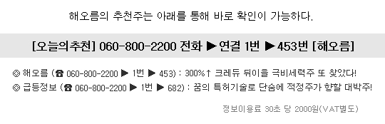 유료ARS 증권정보는 30초당 2000원(VAT별도)의 이용료가 부과됩니다.