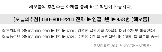 유료ARS 증권정보는 30초당 2000원(VAT별도)의 이용료가 부과됩니다.