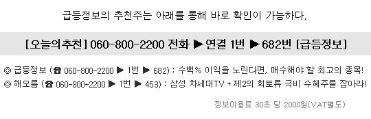 유료ARS 증권정보는 30초당 2000원(VAT별도)의 이용료가 부과됩니다.