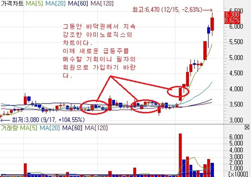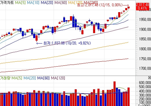 [김성세 실장의”The Prestige club”] * 업종별 전체 업종별 상승세 우세. 증권, 화학, 운수창고, 운수장비, 금융업 등 상승마감 전기전자, 종이목재, 의료정밀, 섬유의복 등 하락마감 * 종목별 시가총액 상위 혼조세 흐름. 현대차, LG화학, 현대중공업, 신한지주, 기아차, SK에너지 등 상승 마감. 삼성전자, POSCO, KB금융, 삼성생명, LG, LG디스플레이 등 하락 마감. 위의 차트에서 보는 바와 같이 지수는 최근 추세상승을 이어가며 신고가를 갱신하는 모습을 보여주었다. 결국 지수는 전일 대비 8.43포인트(0.42%) 오른 2017.48으로 마감했다. 지수는 외인 매수세가 꾸준히 유입되며 2010선을 돌파 안착에 성공하였다. 단기급등에 따른 피로감과 기관과 프로그램 매물 압박에 오전 한때 하락세로 돌아선 모습도 나타났지만 외인의 매수세가 지속 이어지면서 결국 상승흐름을 이어나갔다. 업종별로 보면 전체 업종별 상승세 우세한 가운데 증권, 화학, 운수창고, 운수장비, 금융업 등 상승마감했고 전기전자, 종이목재, 의료정밀, 섬유의복 등 하락마감했다. 종목별로 보면 시가총액 상위 혼조세 흐름을 기록하였는데 현대차, LG화학, 현대중공업, 신한지주, 기아차, SK에너지 등 상승 마감했고 반면 삼성전자, POSCO, KB금융, 삼성생명, LG, LG디스플레이 등 하락 마감했다. [투자의견] 코스피 지수는 외인 매수세가 연일 지속되면서 2010선도 돌파하며 최고치를 재차 경신하는 모습을 보여주었다. 필자의 예측대로 12월 안에 코스피지수는 2000선이 돌파한 상황이 나왔으며 이제 추가 상승에 대한 기대감이 더 커진 상황이 되고 있다. 다만 단기 피로감이 쌓인 만큼 단기적인 조정에 대비를 해두어야 할 시점인데 지수 조정시 그 동안 점 찍었던 종목에 관심을 가져 보면 좋은 결과가 나올 것이다. 주요 이슈로 부각되었던 종목은 지수 상승에 힘입어 증권주들이 연일 강세흐름이 이어지고 있는 가운데 특히 삼성증권은 단 하루 보합이었던 날을 제외하고 10일 상승세를 이어가며 신고가를 기록했다. 한편 필자가 최근 지속 추천해드린 인피니트헬스케어는 삼성 메디슨 인수 최대 수혜주로 부각되며 연속 상한가를 기록하였다. 주식에서 가장 기본적인 주식 상승의 원리는 바로 주식의 기술적 차트 흐름이다. 아래 차트는 최근 급등주의 기본패턴을 잘 보여주고 있는 아미노로직스의 차트이다. 필자의 추천으로 현재 80%이상의 수익을 기록중임을 똑똑히 확인하시라. 필자가 이미 지난 시간 지속적인 강조를 해드린 이유가 바로 이러한 급등 흐름이 나올 차트이기 때문이다. 이렇듯 주식에서 기본적인 주식의 원리와 흐름을 잘 이해하게 되면 정말 돈 벌기 쉬운 일이 아닐까 생각한다. 왜 주식에서 매번 실패를 보는가? 근본적인 것부터 차근 차근 생각하기 바란다. 투자참여자는 이런 기본적인 진리를 충실히 지켜주기만 해도 수익은 나게 되어 있다. 최근 장에서 수익을 올리지 못하는 투자자가 있다면 지금이라도 필자의 조언을 따르기 바란다. 최근 제우스가 추천한 종목 수익률 아미노로직스(074430) 80%, 인피니트헬스케어(071200) 40%, 웰메이드 30%, 이니시스 20% 한국정보통신 20%, 에스에너지 10%, 이제 새로운 종목에 베팅을 시기임을 명심하라. 이제 새롭게 준비된 종목이 있으니 어려우면 필자의 유료회원에 가입하여 매달 20% 이상의 고수익을 거두시기 바란다. 필자의 조언대로 1년 동안 쉽고 편안하게 매매 하기만 하면 원금 10배를 벌수 있다는 사실을 기억하라. 김성세 실장(제우스)는 이데일리TV “신고수열전” 출연자이며, 시황방송 전문가입니다. [전문가클럽 안내 : 02-3772-0309, 0310] [본 글은 전문가의 투자 의견으로 이데일리의 의견과 다를 수 있습니다. 본 글은 투자에 참고용이며 매매에 대한 책임은 투자자 본인에게 있음을 양지하시기 바랍니다] ▶ 관련기사 ◀ ☞[공개방송]2000P 돌파..무엇을 상상하든 그 이상의 수익 기대! ☞[공개방송]연말 랠리 기대 속 "연일 강세흐름"인 업종은? ☞의미있는 상승..연말 목표치와 랠리 강세 예상종목은? |