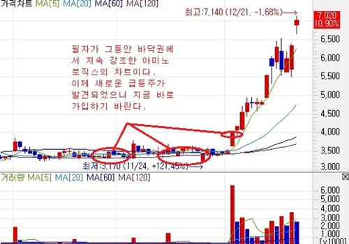[김성세 실장의”The Prestige club”] * 업종별 전체 업종별 상승세 우세. 철강금속 4% 이상 급등, 종이목재, 전기가스, 유통업, 의약품 등 상승마감 운수장비, 증권, 금융업 등 하락마감 * 종목별 시가총액 상위 상승세 우세. 삼성전자, POSCO, 삼성생명, 한국전력, SK텔레콤 등 상승 마감. 현대차, 현대중공업, KB금융, 기아차, 현대모비스 등 하락 마감. 위의 차트에서 보는 바와 같이 지수는 추세 상승을 이어가면서 신고가 갱신을 기록하는 흐름을 보여주었다. 결국 지수는 전일 대비 16.81포인트(0.83%) 오른 2037.09로 마감했다. 지수는 대북 리스크의 부담을 극복하며 장중 2040선도 돌파하는 등 강력한 시세를 기록하며 연중 최고치를 경신하였다. 업종별로 보면 전체 업종별 상승세 우세한 가운데 철강금속 4% 이상 급등, 종이목재, 전기가스, 유통업, 의약품 등 상승마감했고 반면 운수장비, 증권, 금융업 등 하락마감했다. 종목별로 보면 시가총액 상위 상승세 우세한 가운데 삼성전자, POSCO, 삼성생명, 한국전력, SK텔레콤 등 상승 마감했고 현대차, 현대중공업, KB금융, 기아차, 현대모비스 등 하락 마감했다. [투자의견] 지수는 장중 2040선도 돌파하며 사상 최고가 경신도 얼마 남지 않은 상황을 만들고 있다. 이와 같은 흐름이라면 연내에도 가능하리라 생각한다. 그 만큼 지수가 아주 강한 상승흐름을 이어가고 있다. 다만 기술적 흐름으로 볼 때 현재 주가흐름과 거래량 흐름이 다이버전시스를 만들어 놓고 있는 상황이기에 다소간 숨고르기가 필요할 것으로 풀이된다. 거래가 좀 부족한 것이 현재 장의 부담이며 불만족스러운 모습이 아닐까 생각한다. 미국 경제지표 개선, 중국 긴축정책 완화 기대가 있는 만큼 주변적인 상황은 긍정적이며 수급적으로도 외인의 매수기조는 꾸준히 살아 있기 때문에 쉽게 무너지는 모습을 보기 힘들 것으로 판단된다. 주요 이슈로 부각되었던 종목은 그 동안 지수 상승에서 외면 받아왔던 철강주의 초 강세 흐름이었다. 특히 포스코는 5.12%, 현대제철 7.63% 나 급등해주었다. 한편 필자가 최근 바닥권에서 지속 추천해드린 아미노로직스는 수익률만 벌써 100%를 넘겨 버렸다. 어디까지 상승할련지 필자조차도 궁금해 진다. 이제 제2의 아미노로직스를 매수해야할 시기임을 명심하기 바란다. 주식에서 가장 기본적인 주식 상승의 원리는 바로 주식의 기술적 차트 흐름이다. 아래 차트는 최근 급등주의 기본패턴을 잘 보여주고 있는 아미노로직스의 차트이다. 필자가 이미 지난 시간 지속적인 강조를 해드린 이유가 바로 이러한 급등 흐름이 나올 차트이기 때문이다. 이러한 급등흐름이 나올 차트를 발견하였으니 유료회원 가입을 지금이라도 빨리 하길 강력 권하는 바이다. 이렇듯 주식에서 기본적인 주식의 원리와 흐름을 잘 이해하게 되면 정말 돈 벌기 쉬운 일이 아닐까 생각한다. 왜 주식에서 매번 실패를 보는가? 근본적인 것부터 차근 차근 생각하기 바란다. 투자참여자는 이런 기본적인 진리를 충실히 지켜주기만 해도 수익은 나게 되어 있다. 최근 장에서 수익을 올리지 못하는 투자자가 있다면 지금이라도 필자의 조언을 따르기 바란다. 최근 제우스가 추천한 종목 수익률 아미노로직스(074430) 100%, 인피니트헬스케어 80%, 웰메이드 60%, 이니시스 30% 한국정보통신 35%, 에스에너지 10%, 김성세 실장(제우스)는 이데일리TV “신고수열전” 출연자이며, 시황방송 전문가입니다. [전문가클럽 안내 : 02-3772-0309, 0310] [본 글은 전문가의 투자 의견으로 이데일리의 의견과 다를 수 있습니다. 본 글은 투자에 참고용이며 매매에 대한 책임은 투자자 본인에게 있음을 양지하시기 바랍니다] ▶ 관련기사 ◀ ☞2000P진입 전 타이밍 놓친 투자자라면.."조정, 기회로 활용해야" ☞최근 장에서도 수익을 올리지 못한 투자자라면 이렇게! |