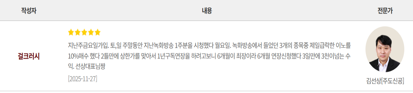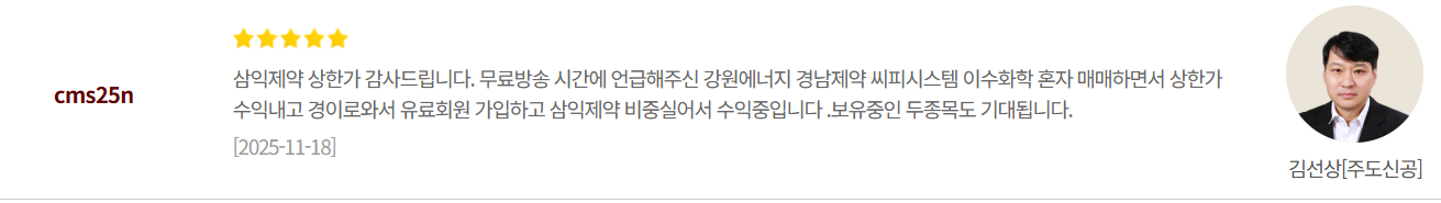 | 제목 : 1등급대장주거래의 원조~ 김선상대표 가족분들은 내년 2026년까지 은퇴자금 수십억 벌수 있다~6천만원수익 |